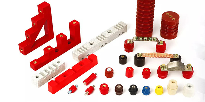 成形材料主要為BMC(Bough Moulding Compound)/ DMC(Dough Moulding Compound)不飽和樹脂。客戶可以根據(jù)自身對絕緣柱的絕緣,機械及電性能指標要求制定使用普通或加強型材料,UL材料。